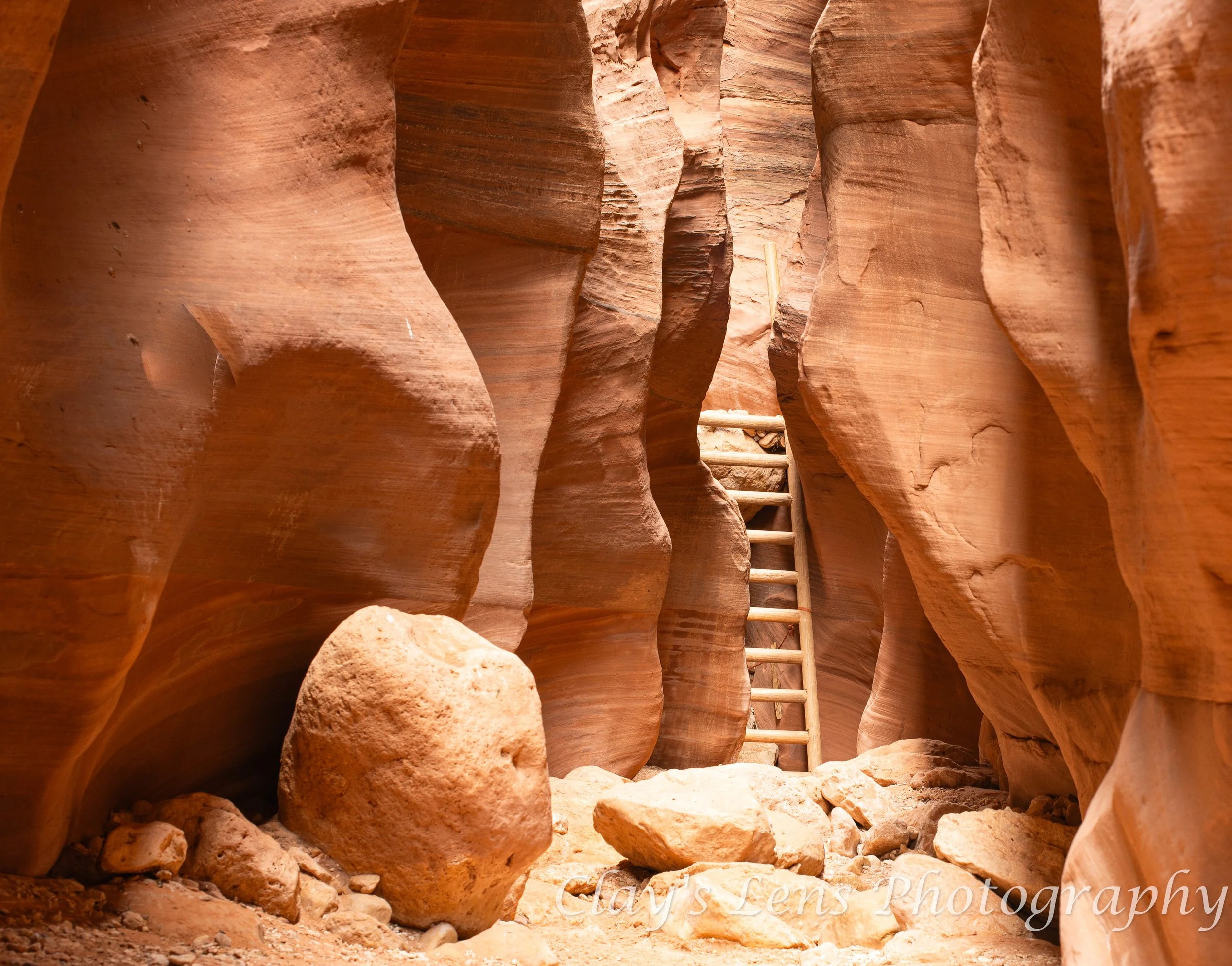 To access the deeper sections of Wire Pass, hikers must descend a large, weather-worn wooden ladder—a crude but thrilling threshold into the narrowing passage ahead. As the walls draw closer, often allowing just enough room to shuffle sideways, the true character of the canyon emerges.