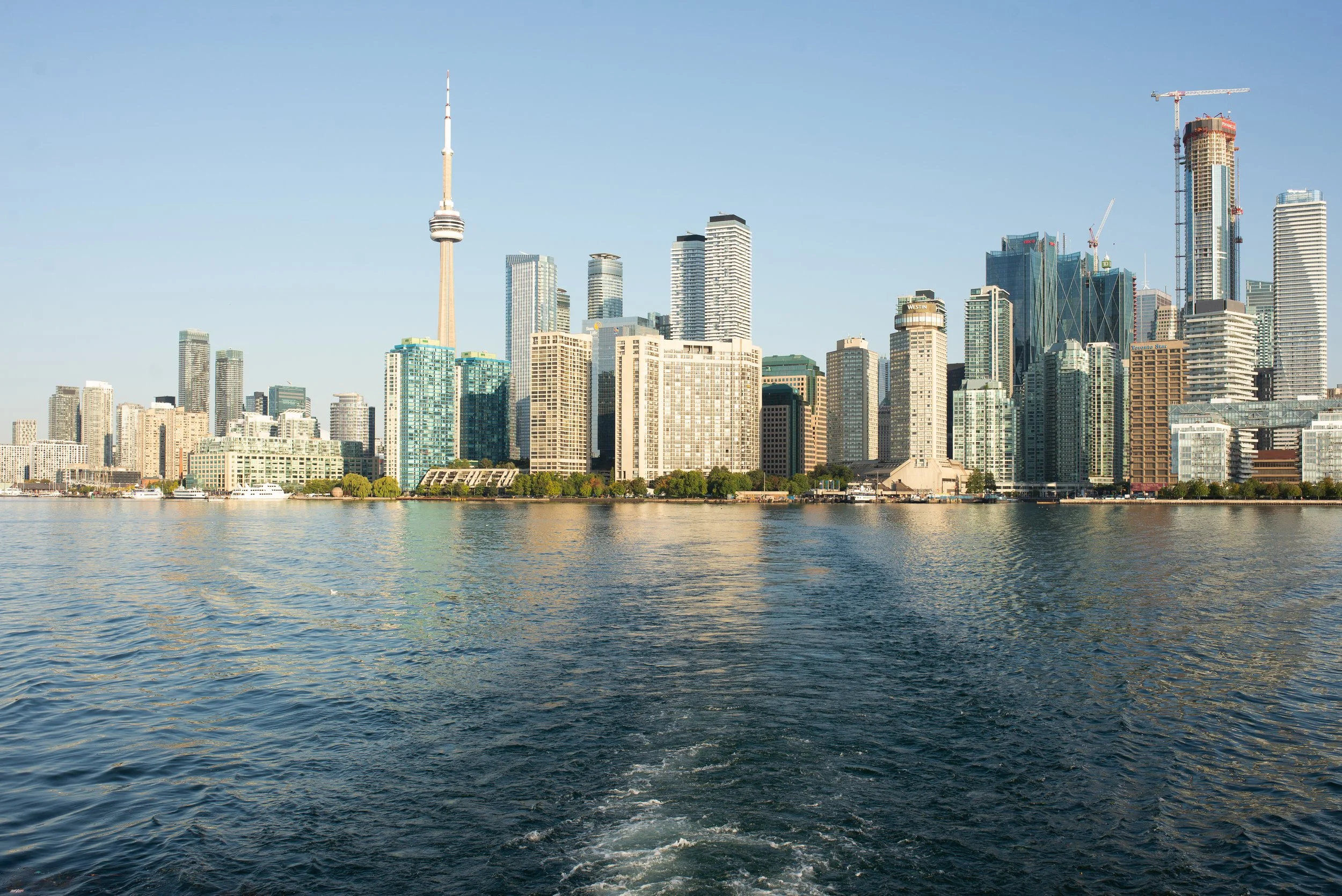 The shot everyone wants is from the waterfront, glass towers stacked against the sky. But the version worth keeping is from the ferry. You earn it. The Jack Layton Terminal, the crossing, the patience to wait while the city shrinks and reorganizes itself into a composition. The water does something to the skyline that no rooftop bar ever will. It gives it distance. And distance gives it shape.